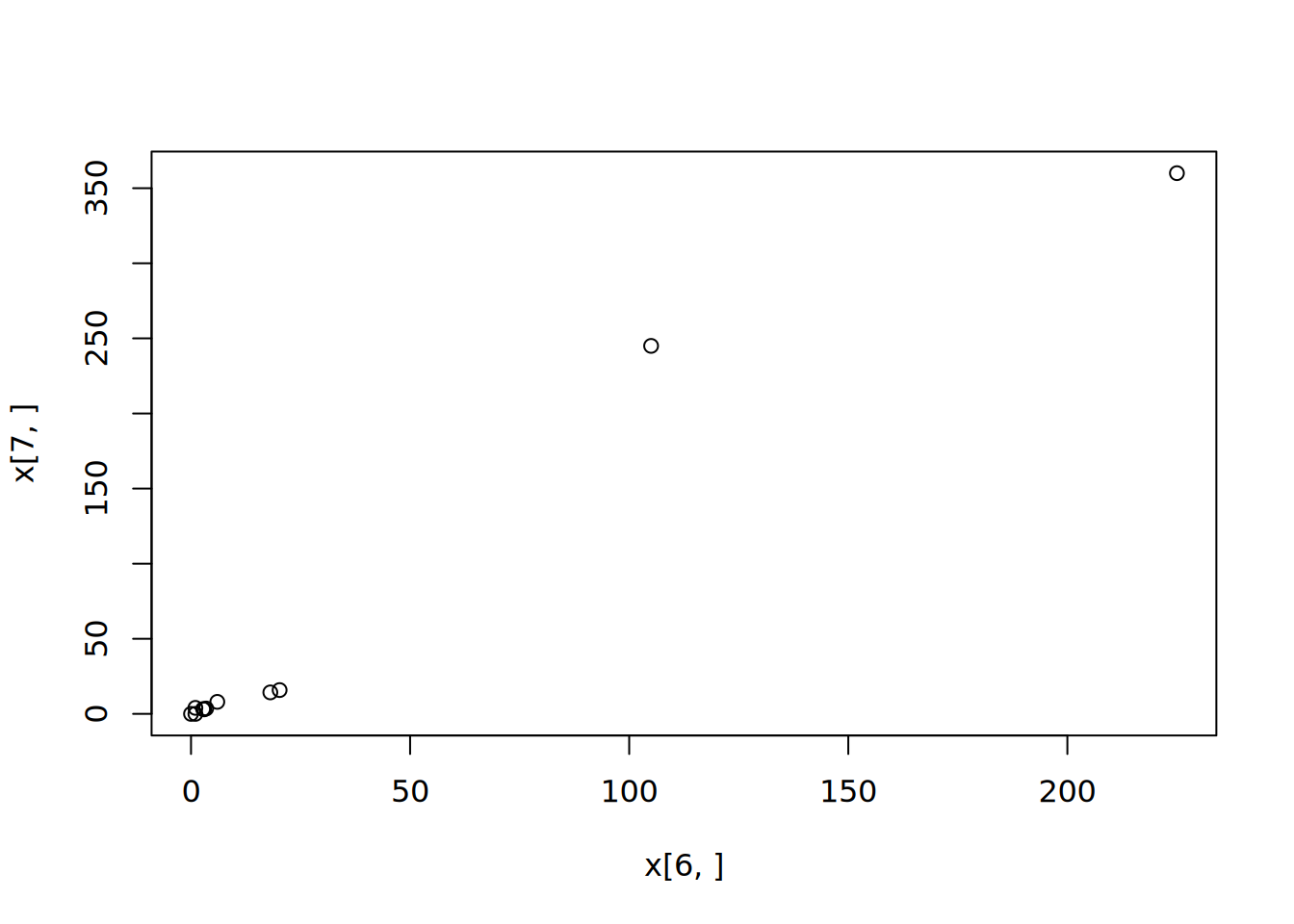 Figure 10. Variable 7 vs. variable 6 of the mtcars data. Data not scaled.