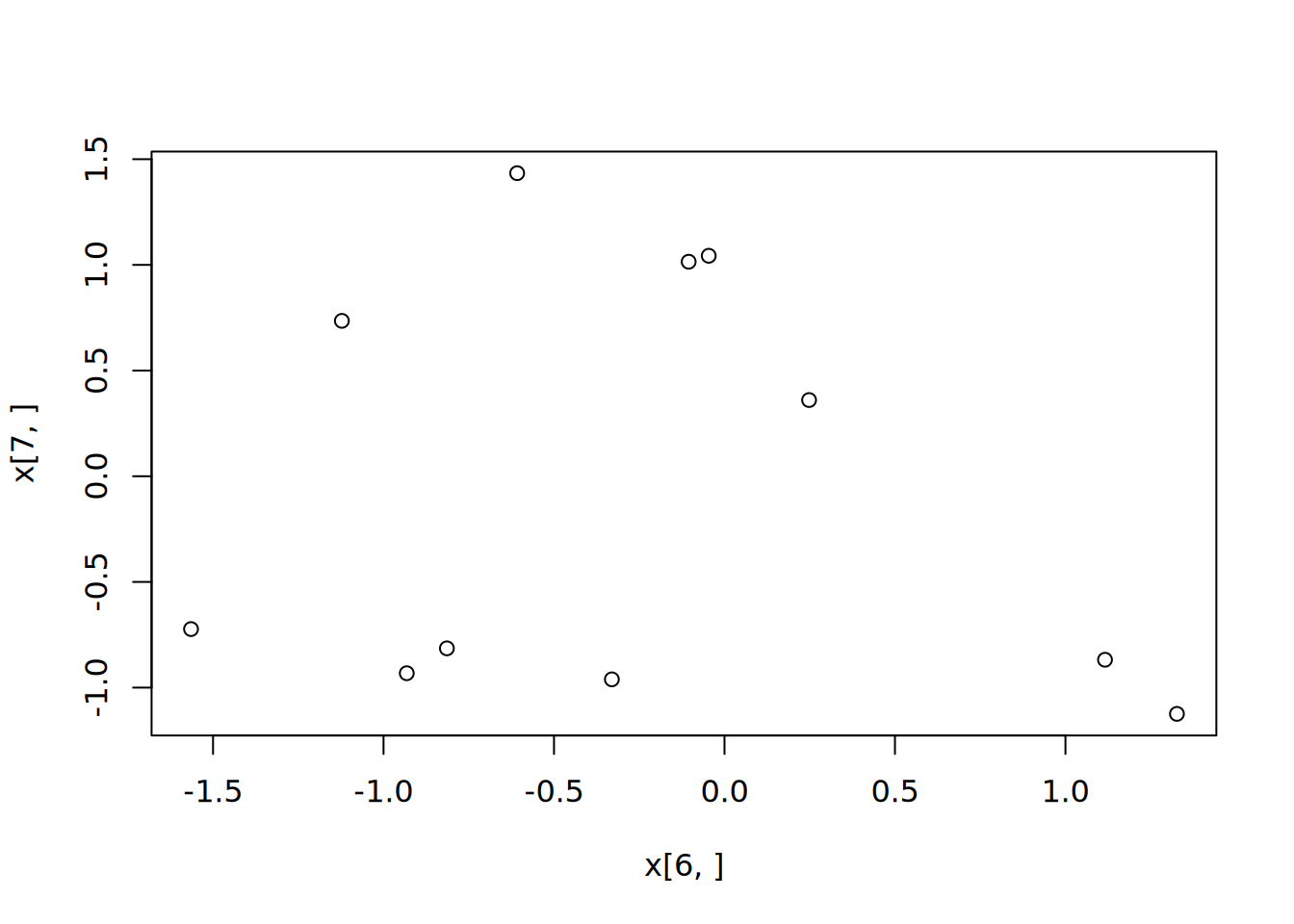 Figure 11. Variable 7 vs. variable 6 of the mtcars data. Data column scaled first.