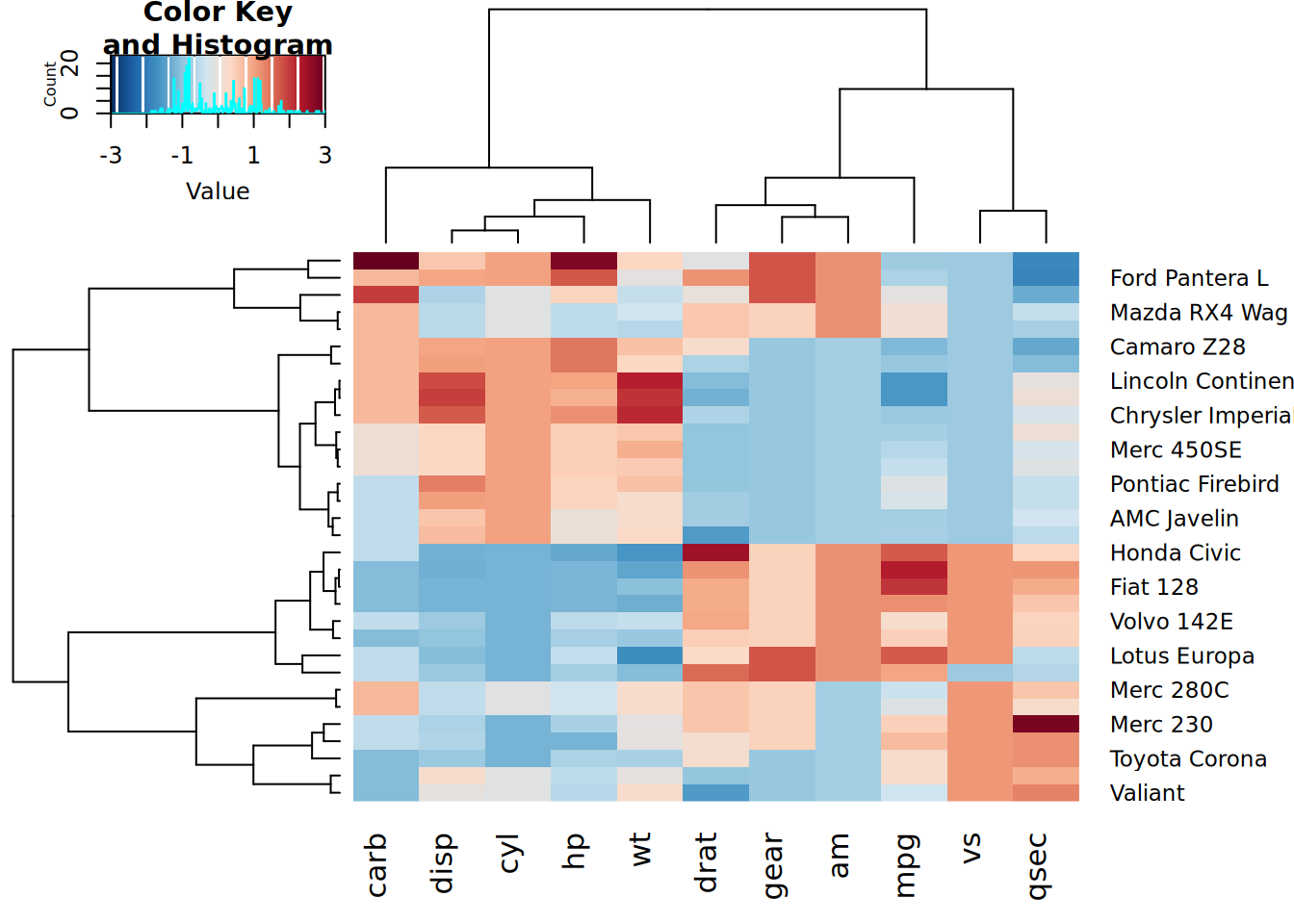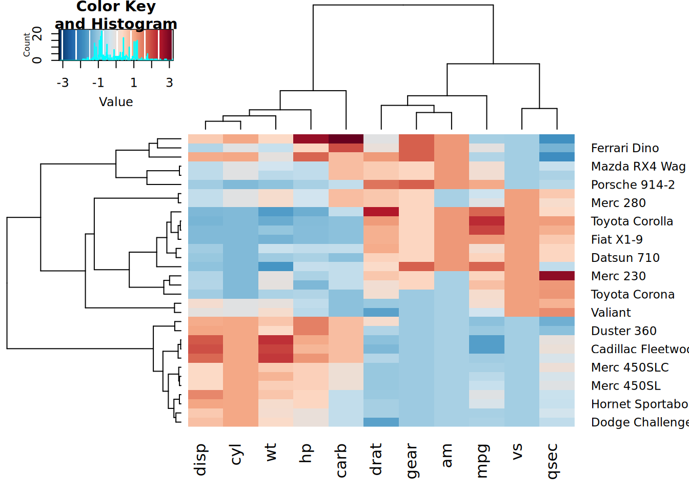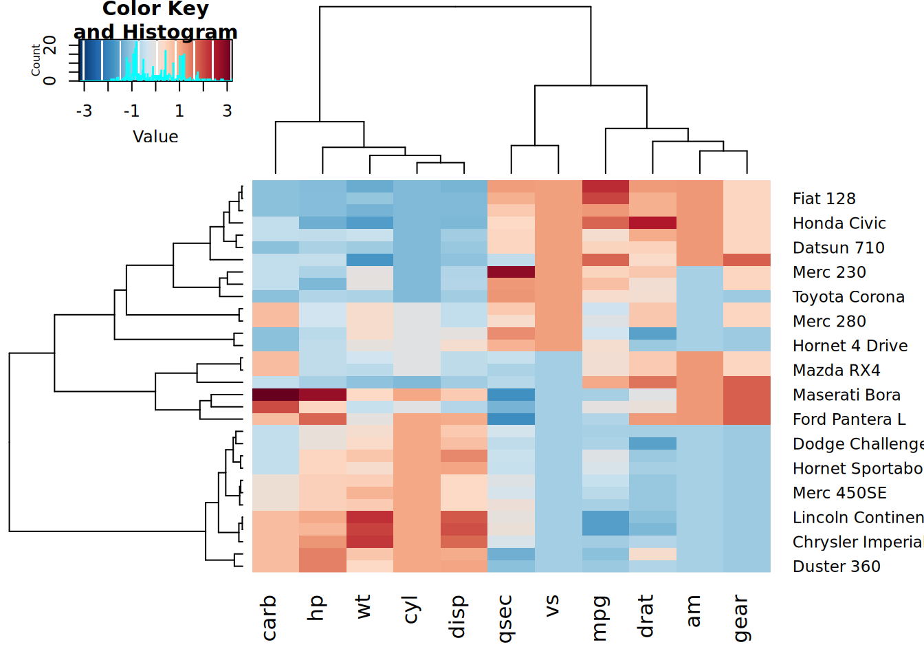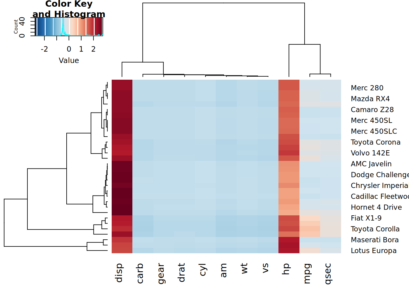 Btw.: And this is very important, heatmap and heatmap.2 (we will get to that one) has the same “feature” as heatplot: scale refers ONLY to the heat data, NOT the dendrogram calculation.