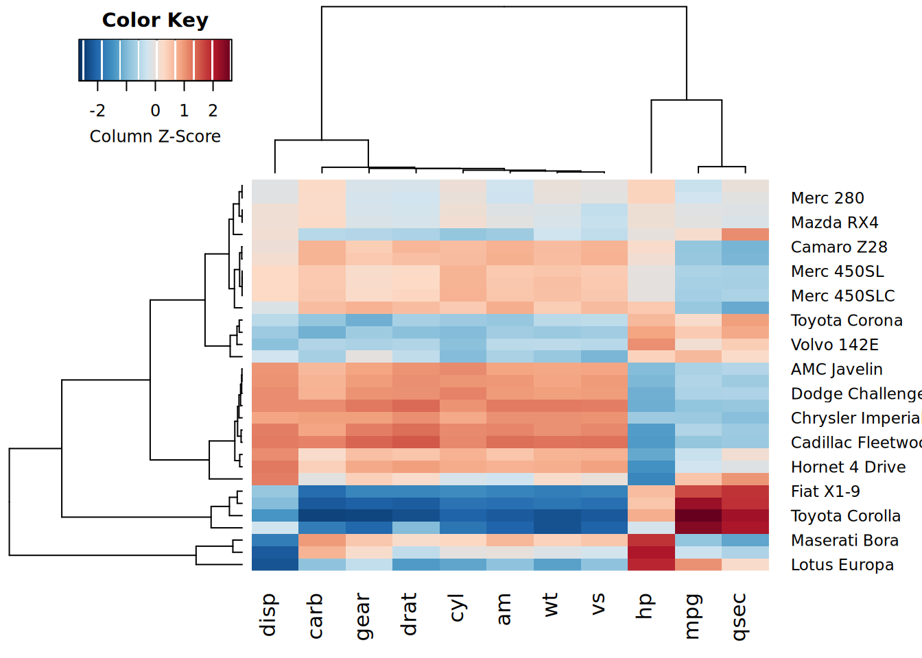 Figure 4. Column scaled data and then heatmap. No other scaling.