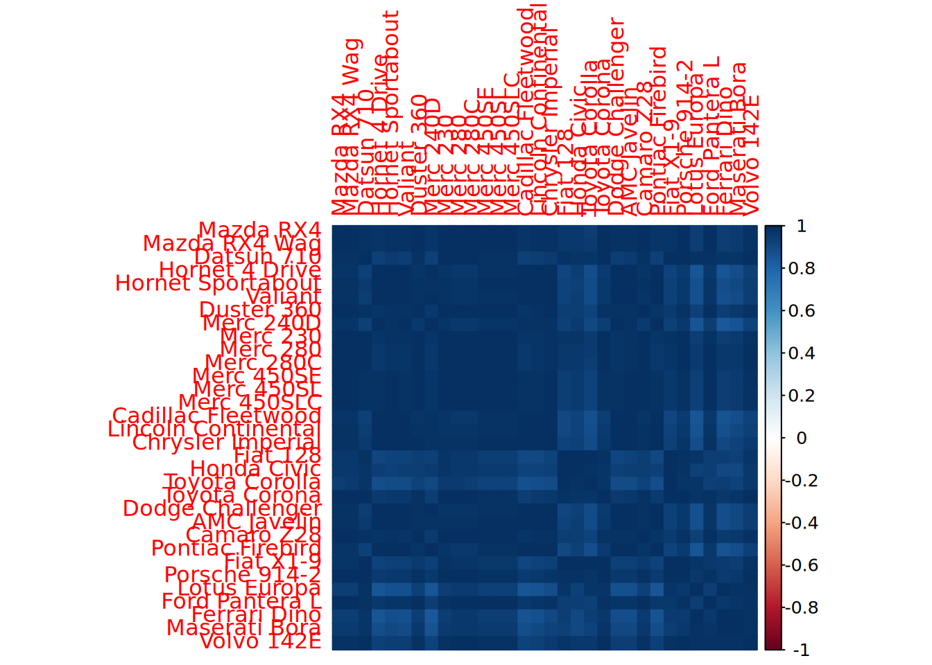 This looks similar to heatplot but heatmap.2 reorders as above while heatplot does not.